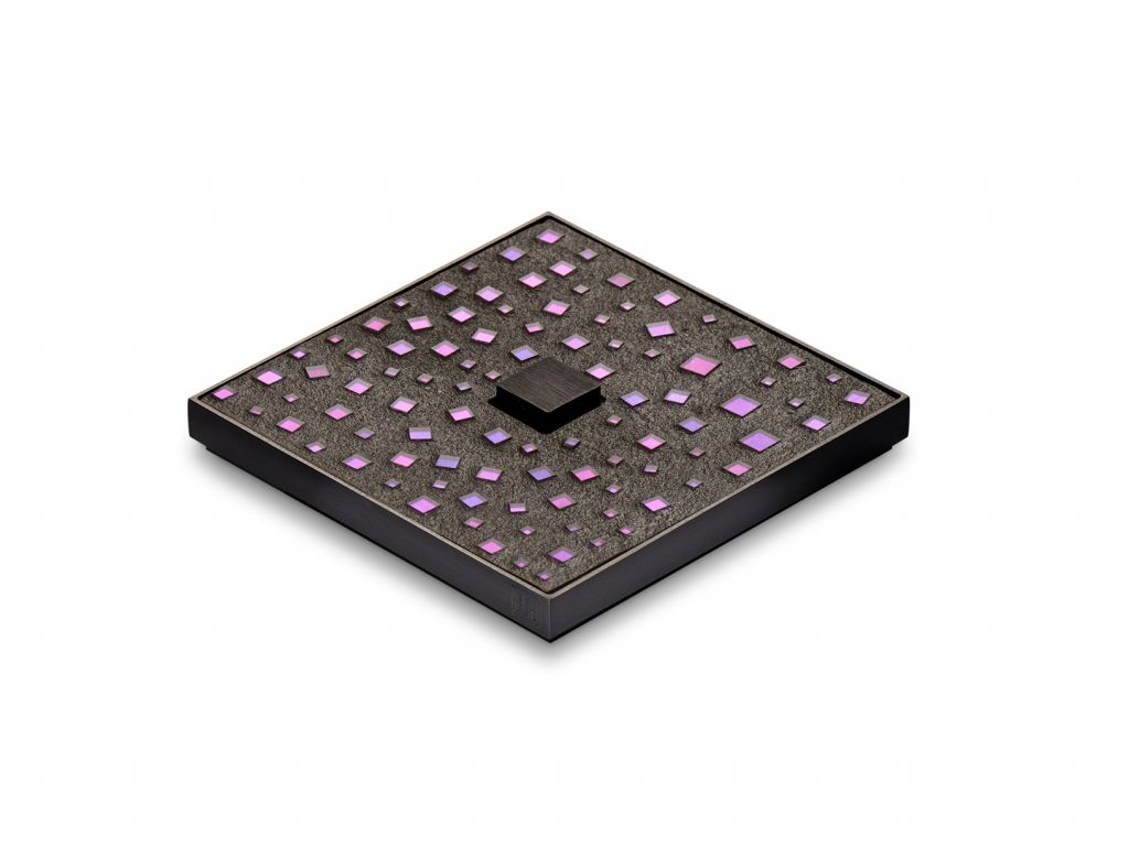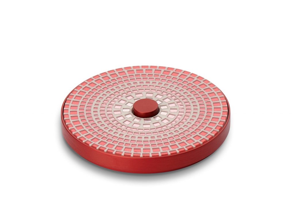 Hinter dieser ästhetischen Ausdruckskraft steht eine sorgfältige Gestaltung und operative Ausarbeitung. Der Körper der Platte besteht aus einem massiven Stück Aluminium, das mit den modernsten numerischen Steuerungstechnologien bearbeitet und anschließend mit Glaskugeln poliert, mikrosandgestrahlt und schließlich in den Farbvarianten Rose, Silber, Hellgold und Tiefgrau eloxiert wurde, um ihm eine beispiellose Materialstruktur zu verleihen.