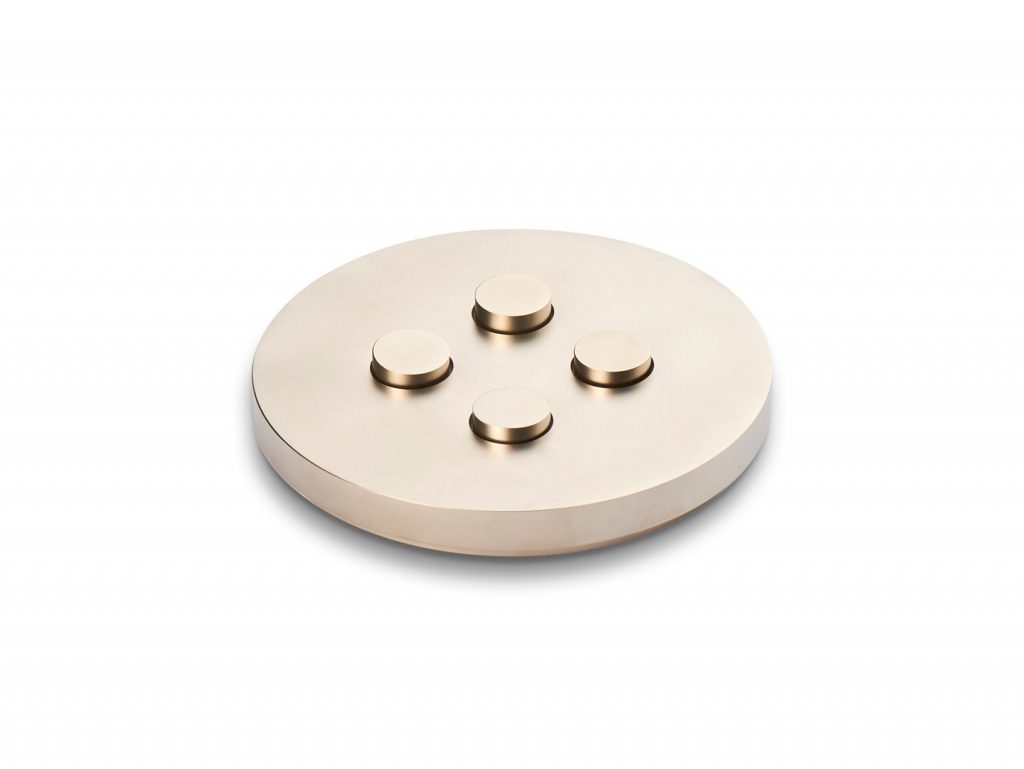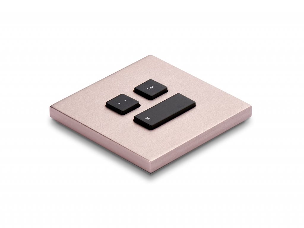 Die Tasten sind nach einem strengen Raster ausgerichtet, das ein bis vier Bedienelemente mit LED-Hintergrundbeleuchtung bietet. Sie sind ebenfalls aus eloxiertem Aluminium mit einem mattschwarzen Finish und mit den Zeichen aus der Computergrafik graviert. Die Kollektion, die in Farbkombinationen und Oberflächen vollständig anpassbar ist, wird durch Sockelplatten mit kreisförmigem Element ergänzt, die mit Berker R. classic-Komponenten kompatibel sind.